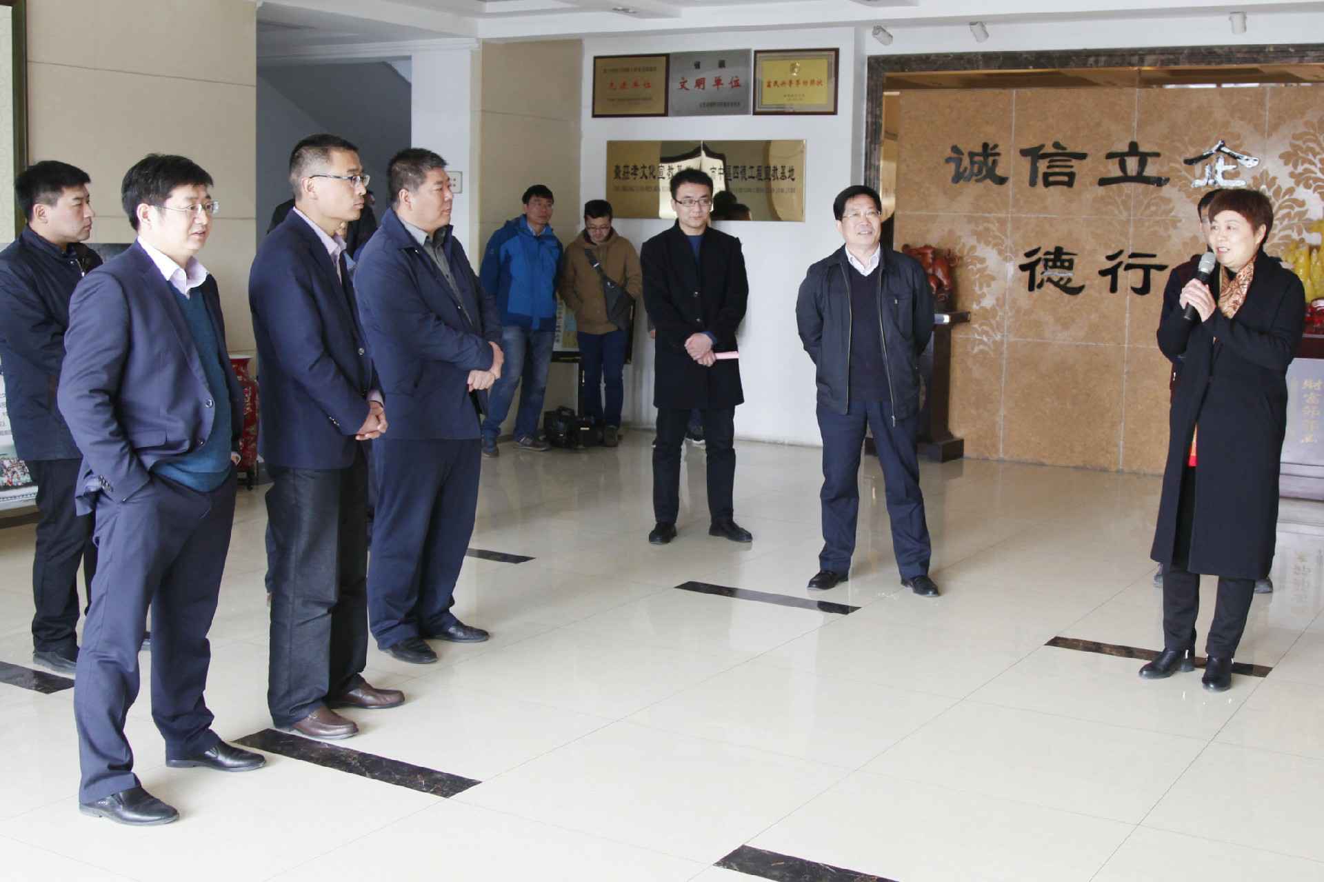 3月23日,市中区组织部宋部长带领市中区各部门街道党委负责人来公司现场观摩企业基层党建示范点工作,公司董事长颜廷英代表汇报公司“双飘双提”的发展理念,通过党旗飘扬和文化飘香两方面引领促使公司干部员工提振企业发展,从而提升企业效率,党建引领企业发展工作受到各级领导好评。